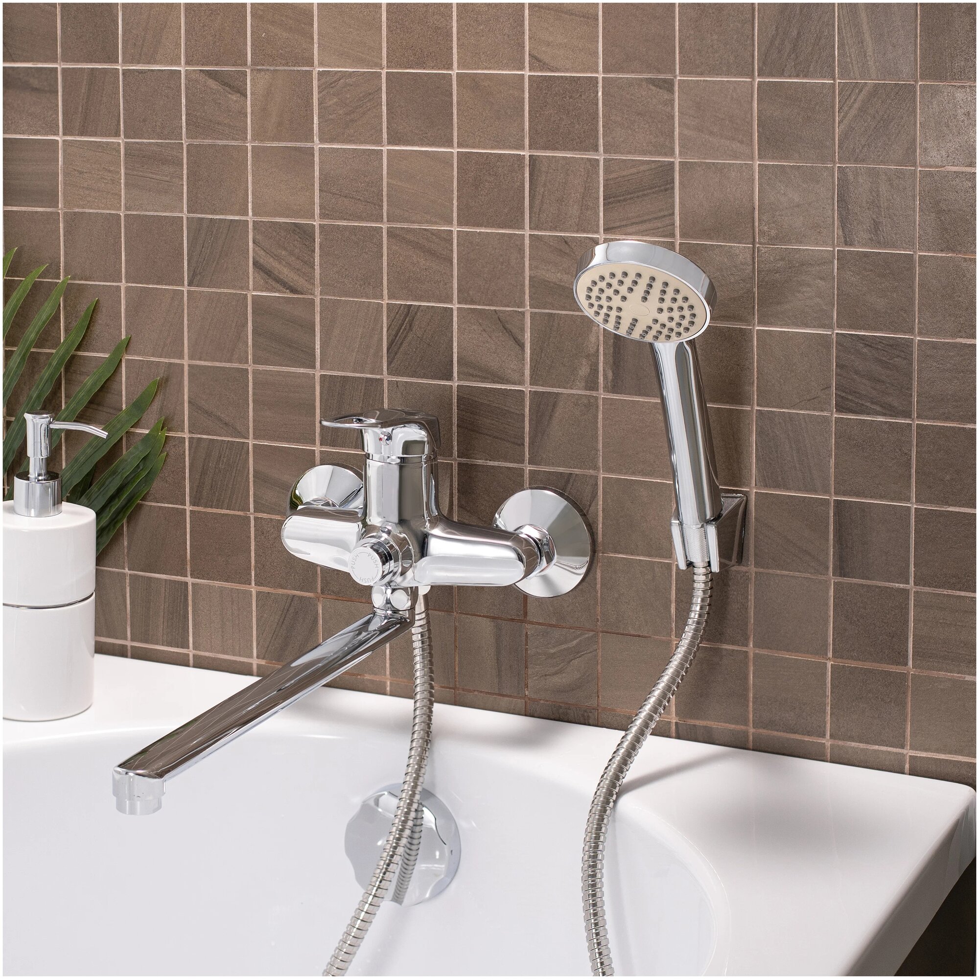 Смеситель для ванны и душа РМС SL55-006EK с кнопочным переключением на душ