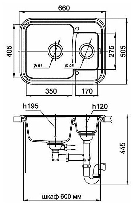 | Размеры мойки (ДхШ) | 66х51 см |