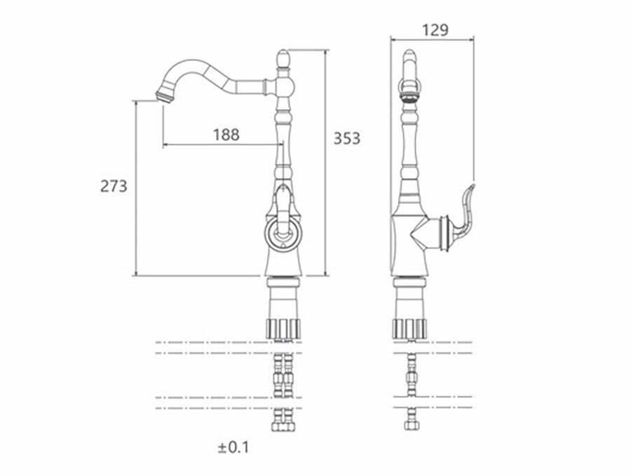 | Плюсы: | высота излива, удобная ручка переключателя, винтажный внешний вид. |