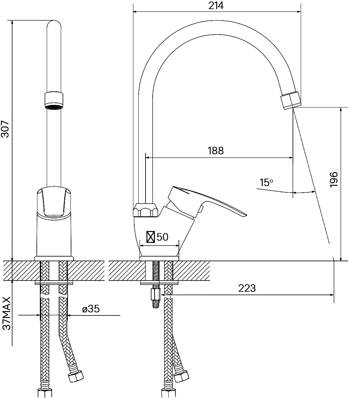 | Минусы: | Гибкая подводка коротковата: 30см, чисто номинальная, рекомендую заменить |