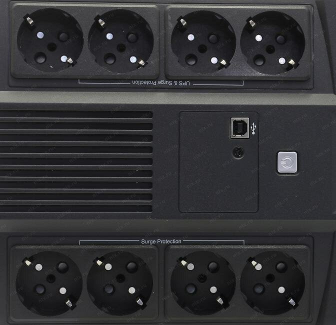 | Плюсы: | Достаточно мощный, приличное количество евророзеток, разделённых на два сектора - просто защищаемые/с выпрямителем и защищаемые/с выпрямителем/с питанием от АКБ, что позволяет через данный ИБП гибко подключить большое количество устройств с требуемой степенью защиты и автономности. |