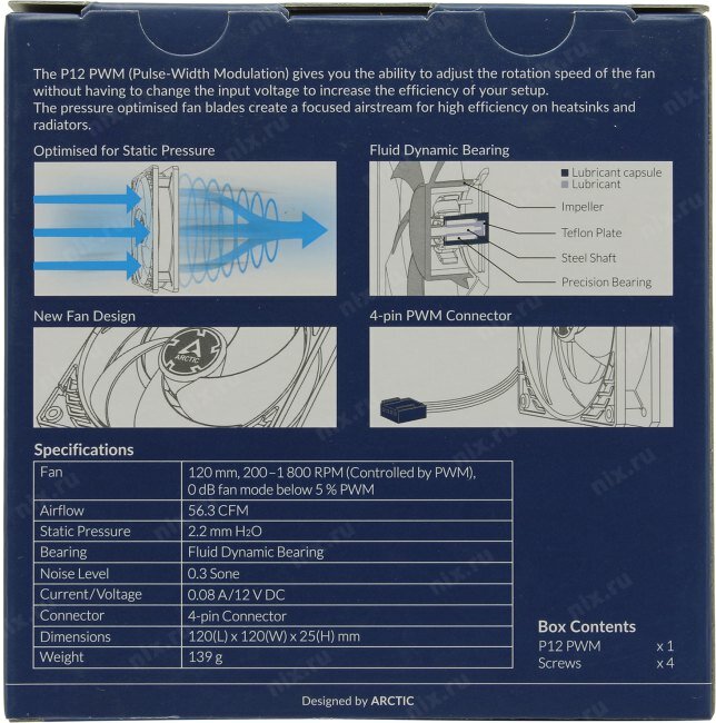 Вентилятор Arctic Cooling P12 PWM 120 мм 4-pin PWM, 1шт (ACFAN00119A)