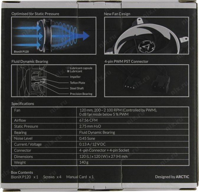 Вентилятор Arctic BioniX P120 (White) PWM 200 - 2100 RPM - retail (acfan00116a) Acfan00116a .