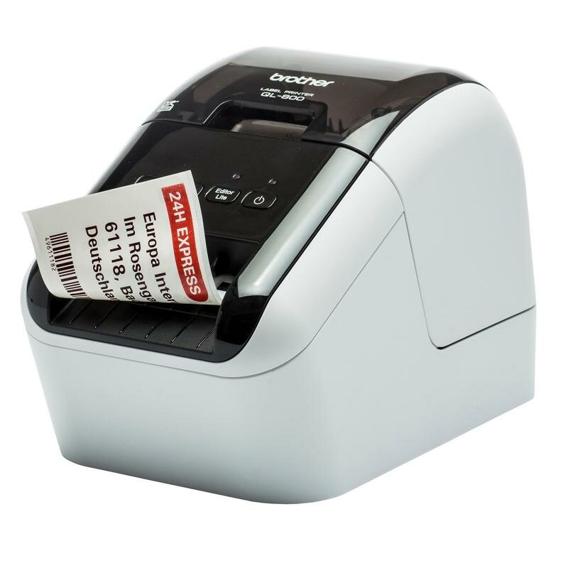 Brother Принтер этикеток QL-800 с USB для ПК и Mac. Печать черного и красного текста. Печатает наклейки шириной до 62 мм.