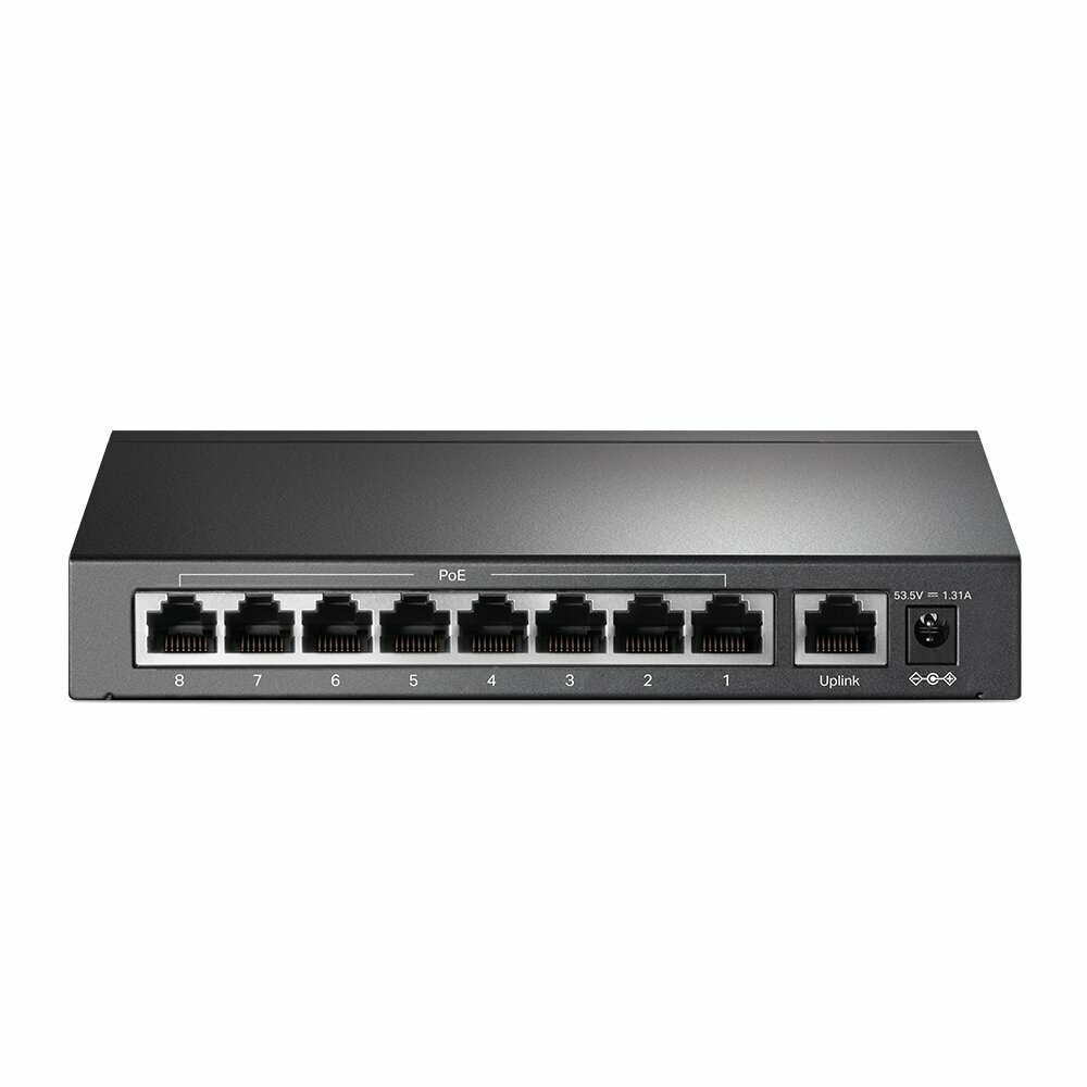 Коммутатор 9-port 10/100Mbps unmanaged switch with 8 PoE+ ports, compliant with 802.3af/at PoE, 65W