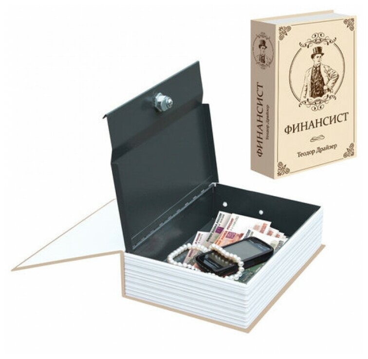 Сейф-книга / шкатулка / тайник для денег "Финансист", 60х170х240 мм, ключевой замок, Brauberg, 291057