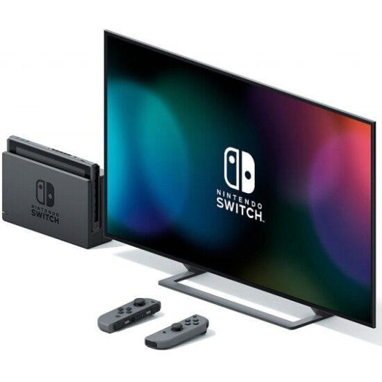 | Особенности | в комплекте: консоль, докнетстанция Nintendo Switch, контроллеры JoyнетCon (серый, неоновый синий или неоновый красный), ремешки JoyнетCon, держатель JoyнетCon, блок питания Nintendo Switch; подключение к ТВ; акселерометр, гироскоп, сенсор яркости; разъем USB type C |