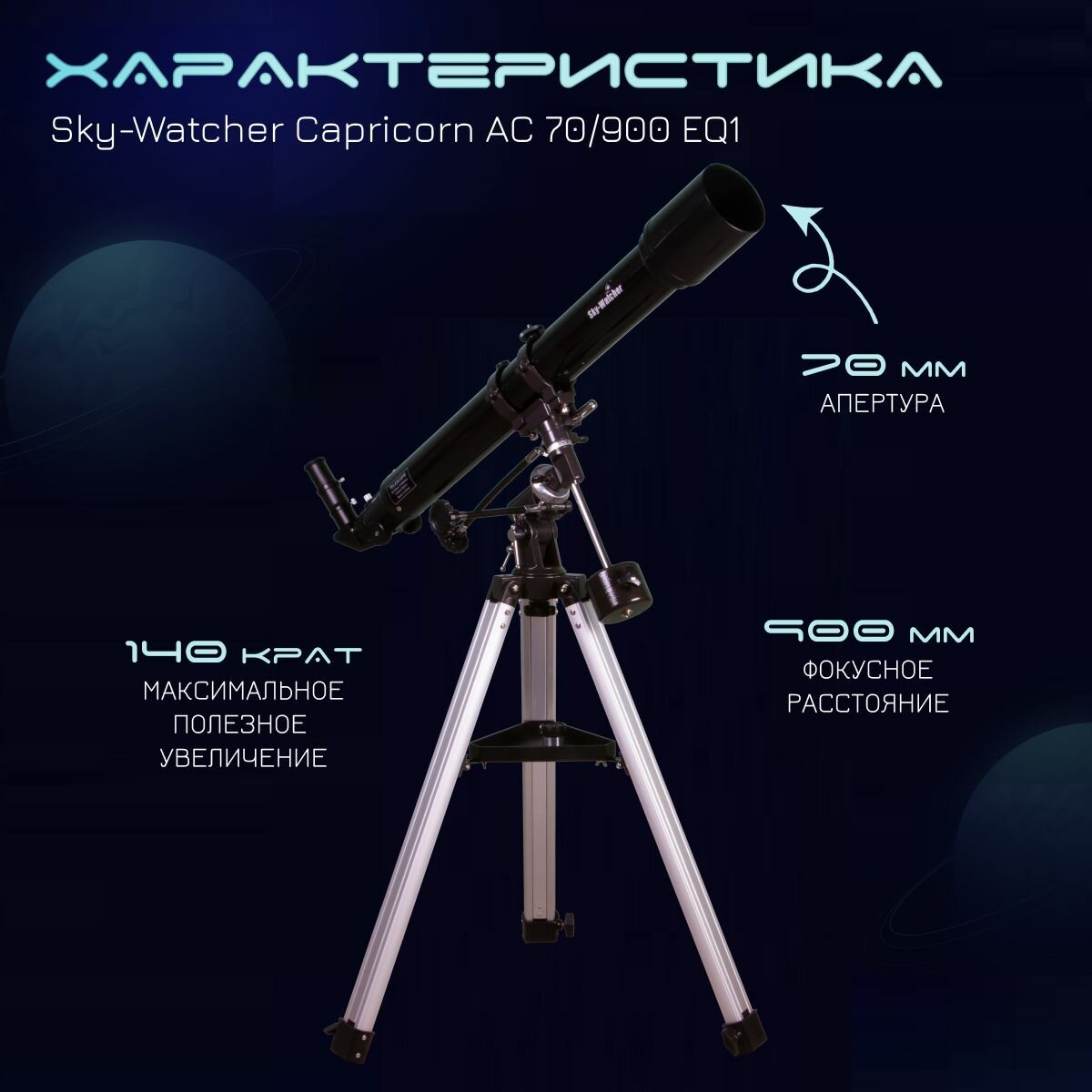 СохранитьТелескоп Sky-Watcher Capricorn AC 70/900 EQ1 интересное: