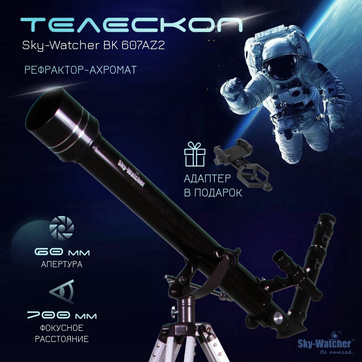 Телескоп SKY-WATCHER BK 607AZ2 рефрактор d60 fl700мм 120x черный
