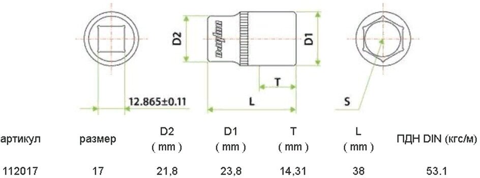 "Головка торцевая 1/2""DR, 17 мм" 112017