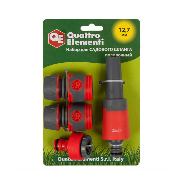 Quattro Elementi Набор поливочный 4 предмета. Соединитель 1/2-2 шт., штуцер 1/2 и 3/4, мягкий пласти