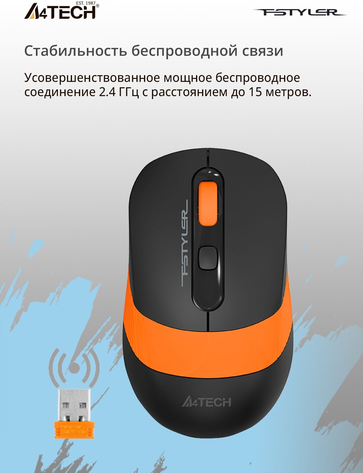 Купить Мышь A4TECH Fstyler FG10S, оптическая, беспроводная, USB, черный и оранжевый [fg10s orange]