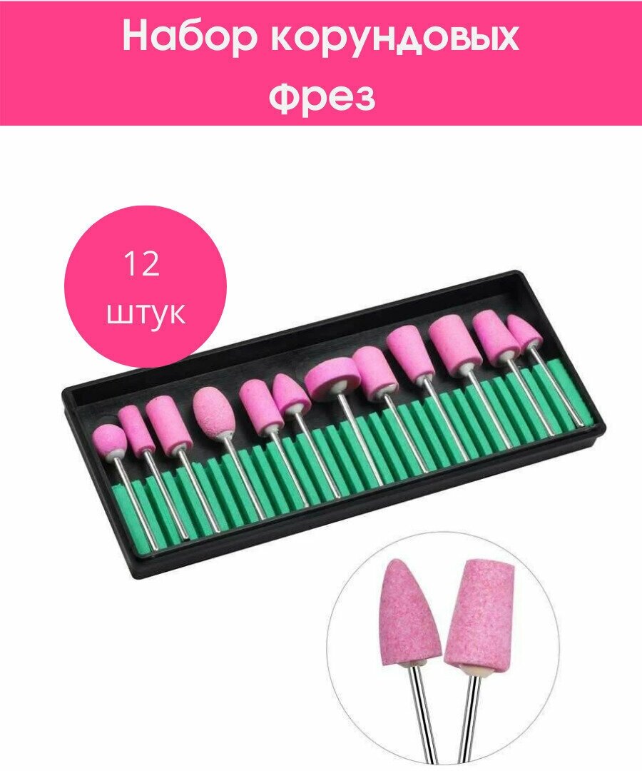 Набор фрез корундовых для аппаратного маникюра 12шт п/коробка пакет QF