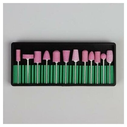 Фрезы для аппаратного маникюра Queen fair Фрезы корундовые для маникюра в органайзере, 12 шт