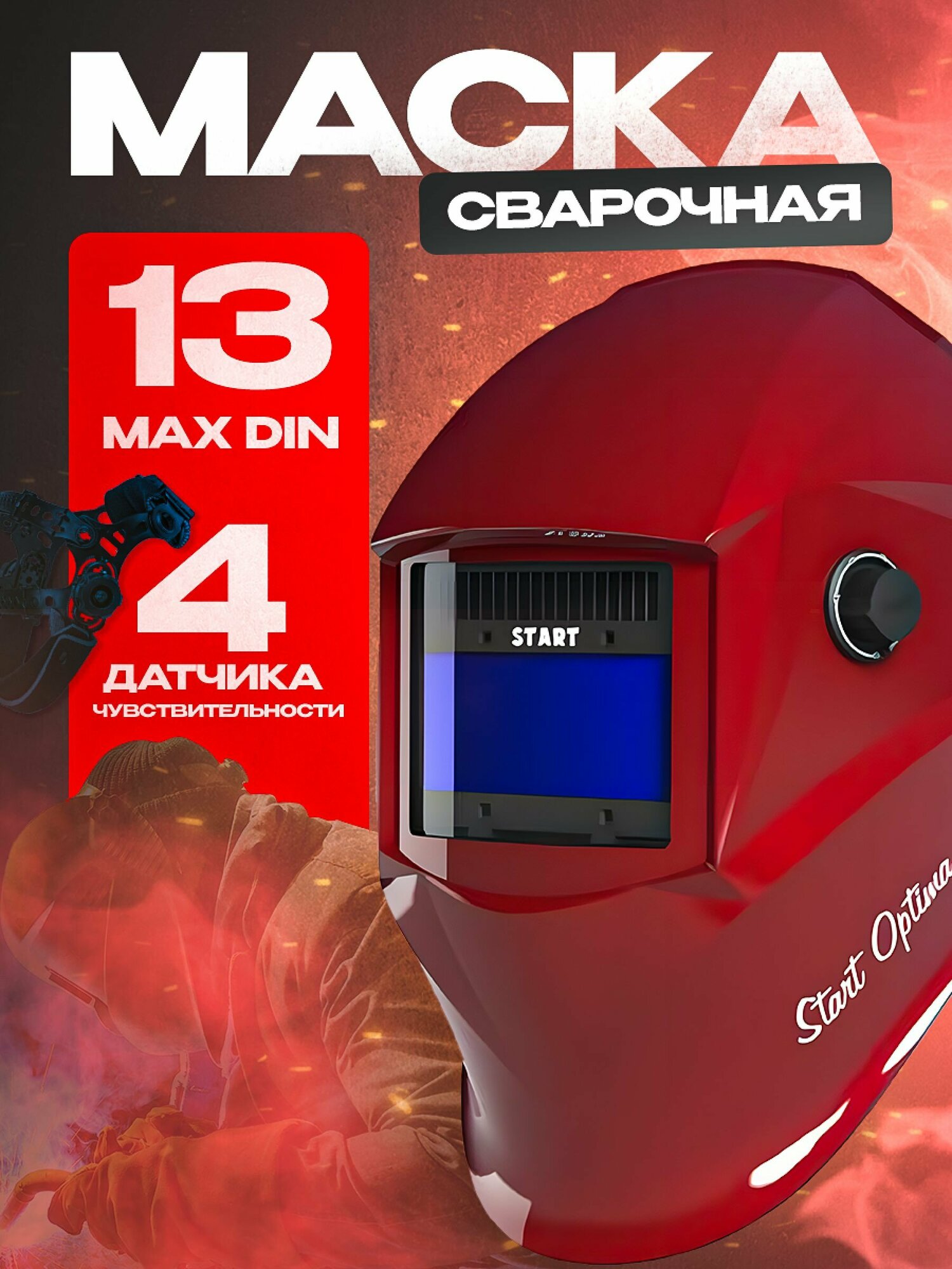 Маска сварщика хамелеон START OPTIMA АСФ 615 (Красный глянец) (51ST615R) интересное: