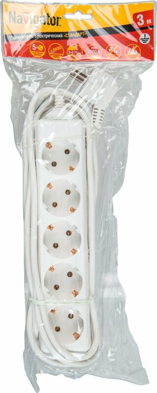 Удлинитель Navigator 71 555 NPE-S-05-300-E-3x0.75, 5 розеток, 3 м, с/з, 10А / 2200 Вт белый