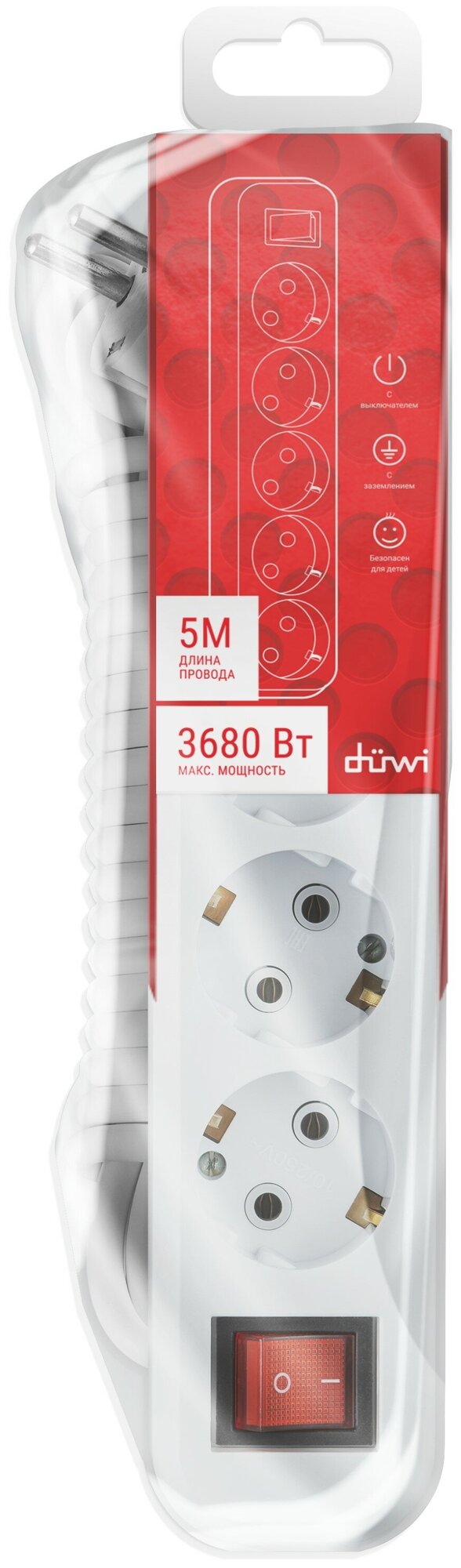 Сетевой фильтр Duwi 32063 0, 5 розеток, 5 м, с/з, 16А / 3680 Вт