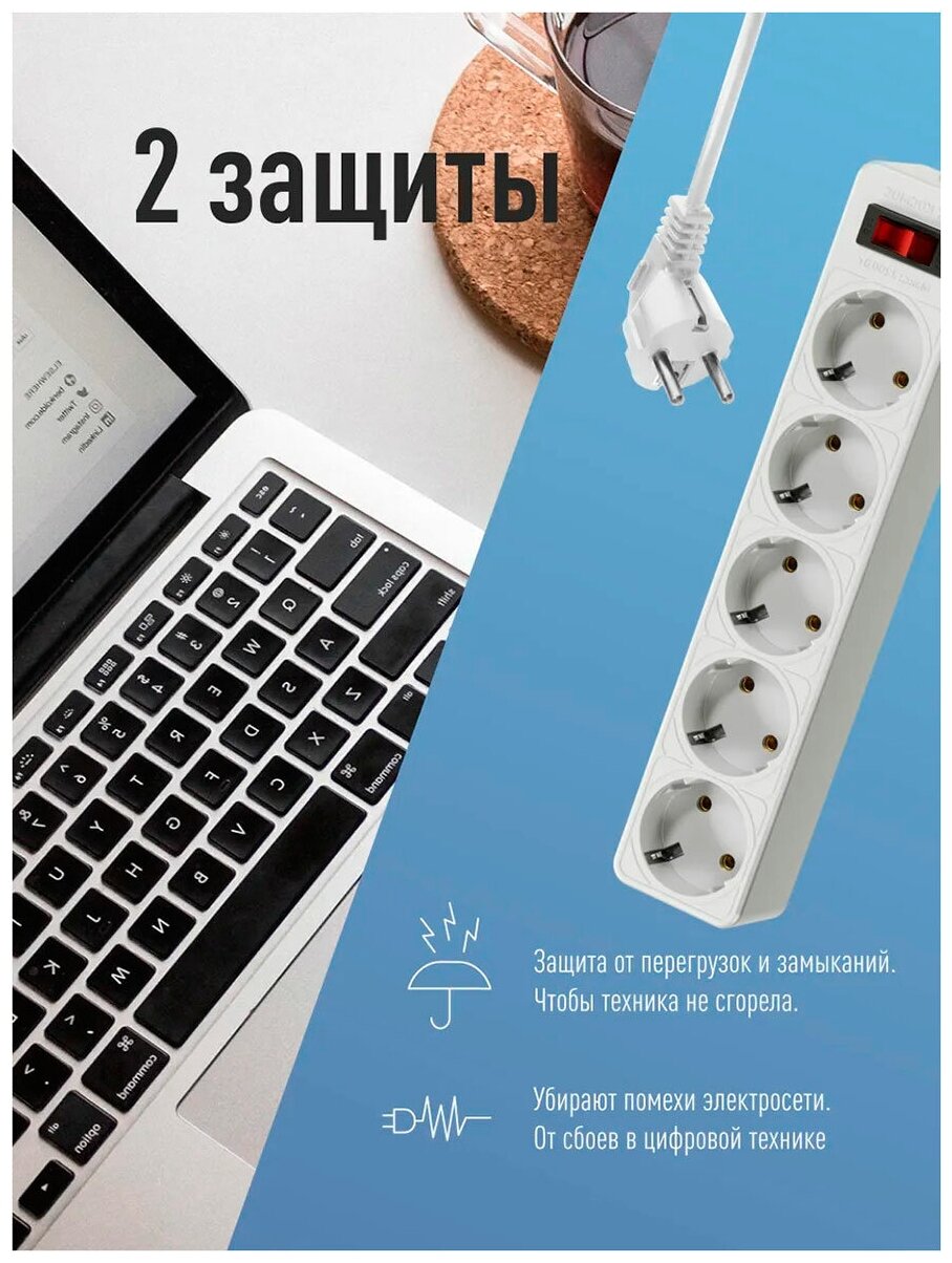 Сетевой фильтр космос FKsm5m-5g(W), 5 розеток, с/з, 10А / 2200 Вт белый 5 м 0.75 м² 5