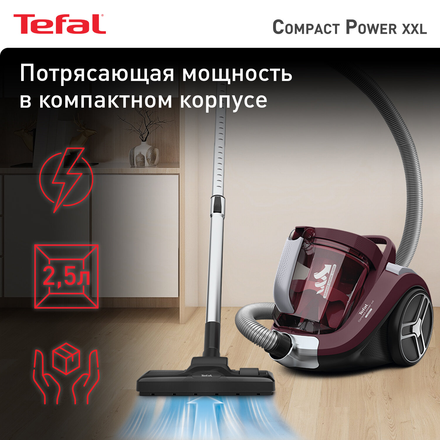 Пылесос с контейнером Tefal Compact Power XXL TW4B25EA, 900 Вт, 2,5 л, 3 насадки