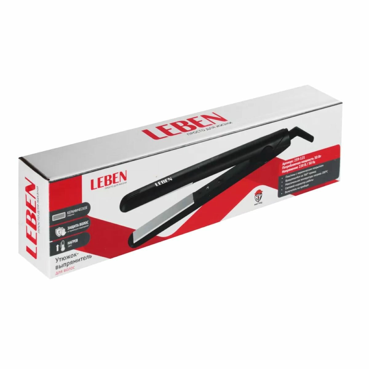LEBEN Утюжок-выпрямитель для волос, 30Вт, нагрев 200гр.С