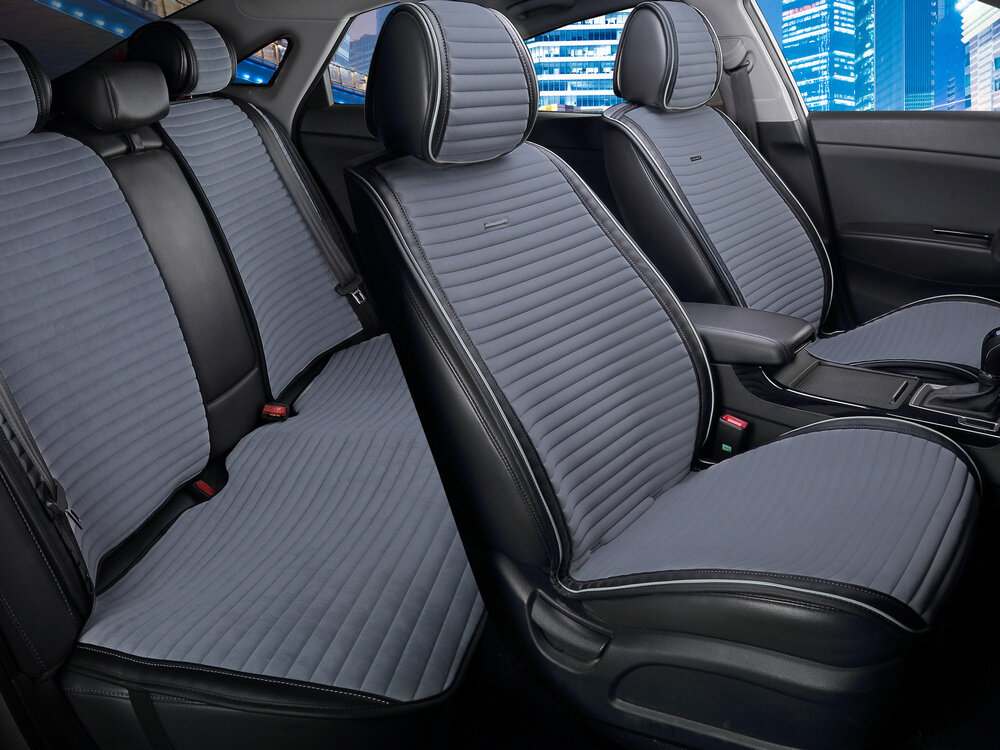 Купить Комплект накидок на весь салон CarFashion "MONACO PLUS", цвет черный/темно-серый