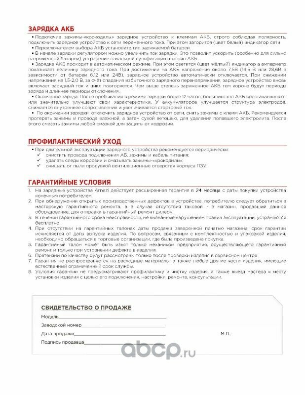 ARNEZI R7990105 Зарядное устройство ЗУ-10А (6/12В, 2.5-10А, акб 10-150Ач) ARNEZI R7990105 1шт