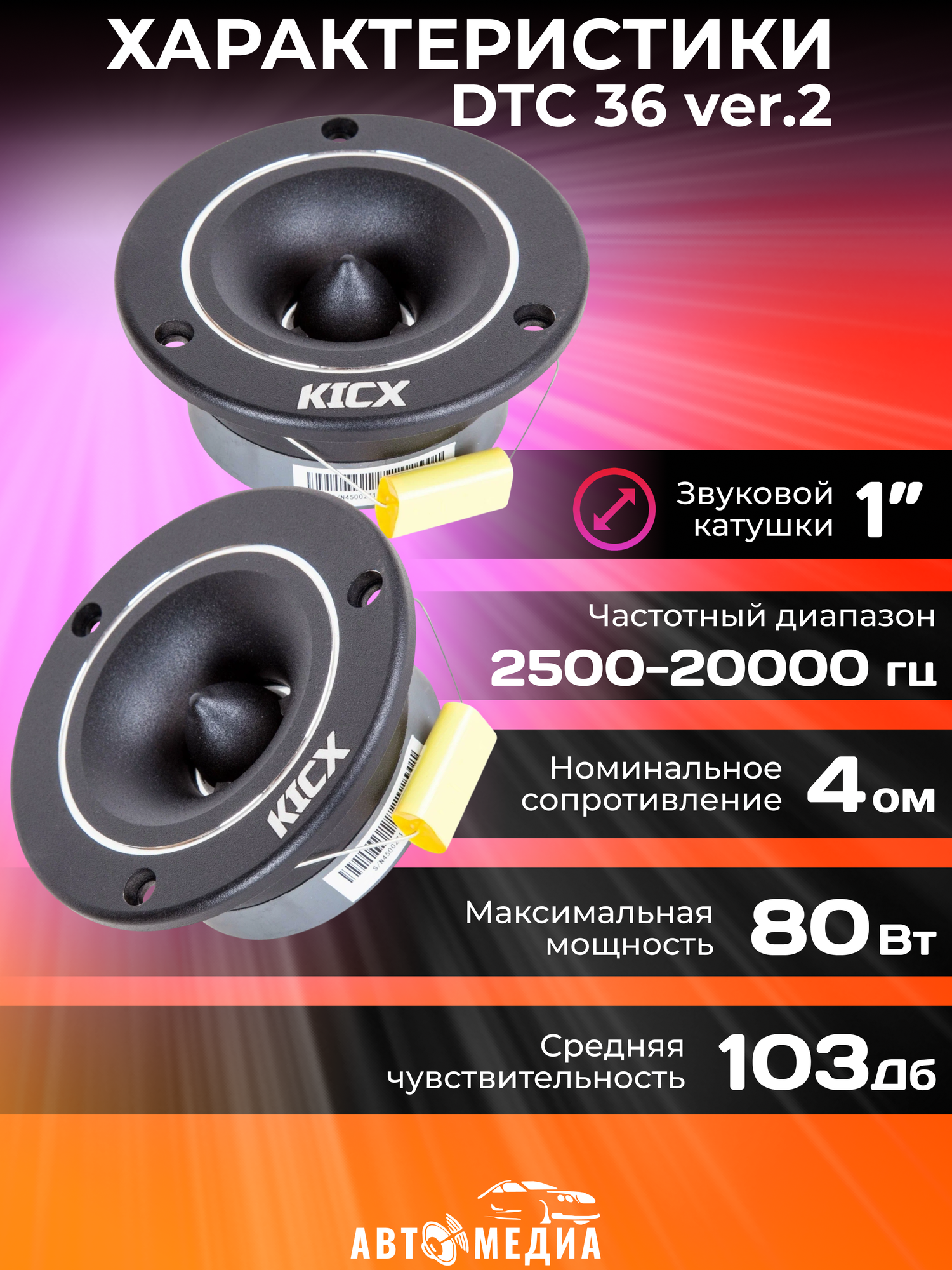 Автомобильная акустика динамики DTC 36 ver.2 Kicx Высокочастотные динамики