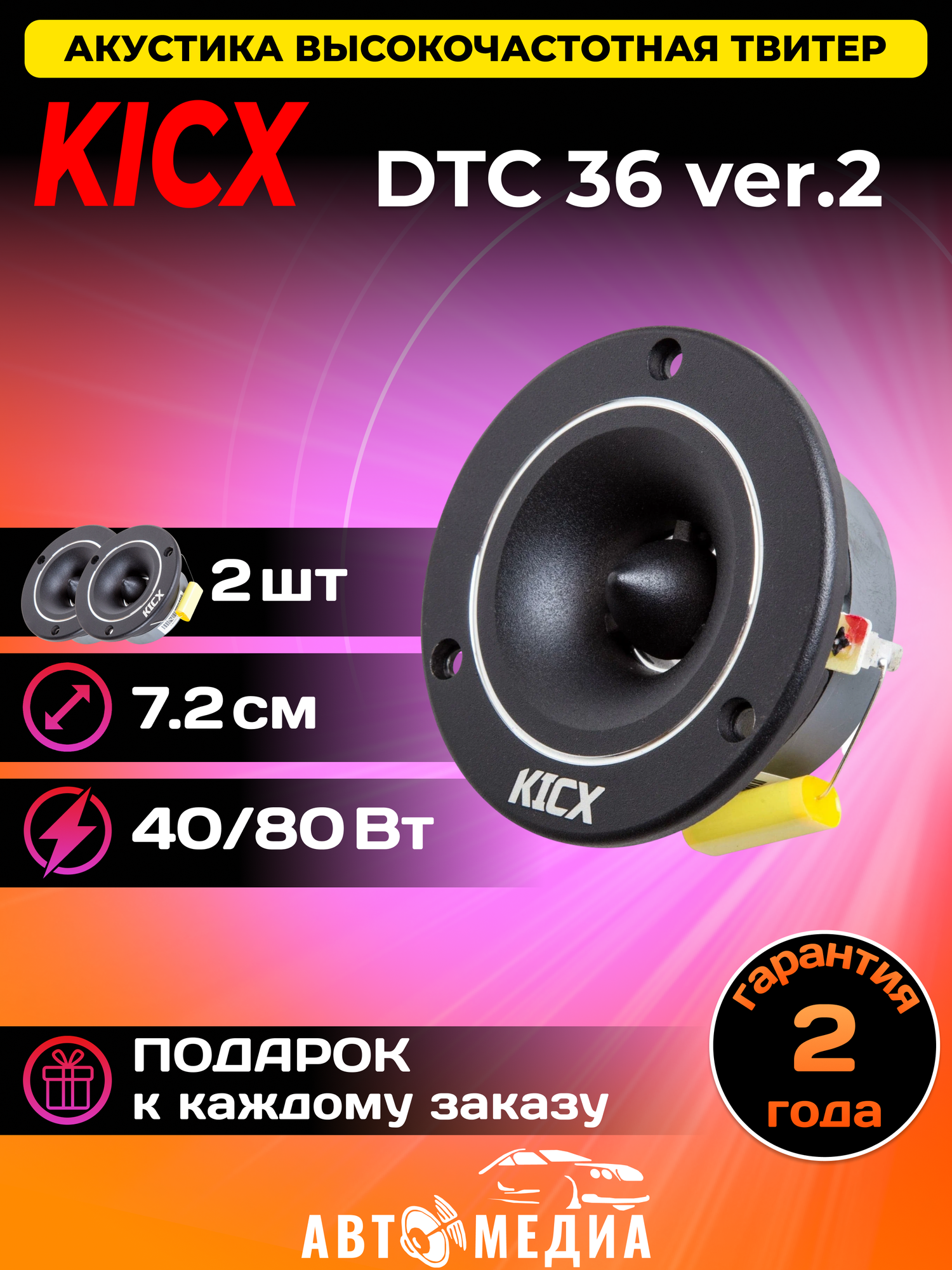Твитеры Kicx DTC 36 ver.2, 80 Вт, набор 2 шт