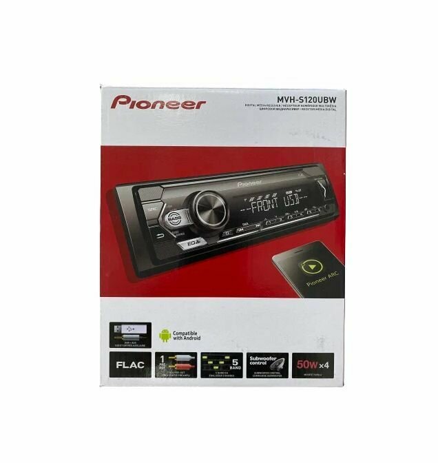 Автомагнитола Pioneer MVH-S120UBW с тюнером, USB, Aux-входом, поддержкой аудиоформата FLAC, совместимый с смартфонами на Android