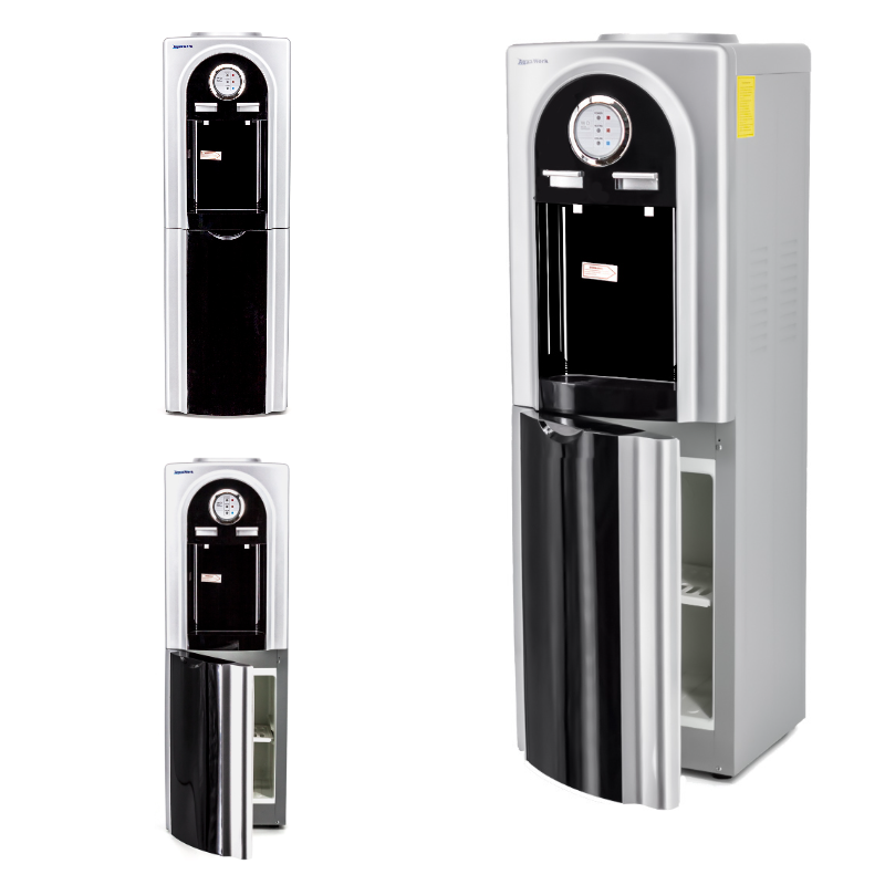Кулер для воды Aqua Work YLR1-5-VB / Черный-серебристый / Напольный / Нагрев / Электронное охл / Нажатием на кнопки / Шкафчик