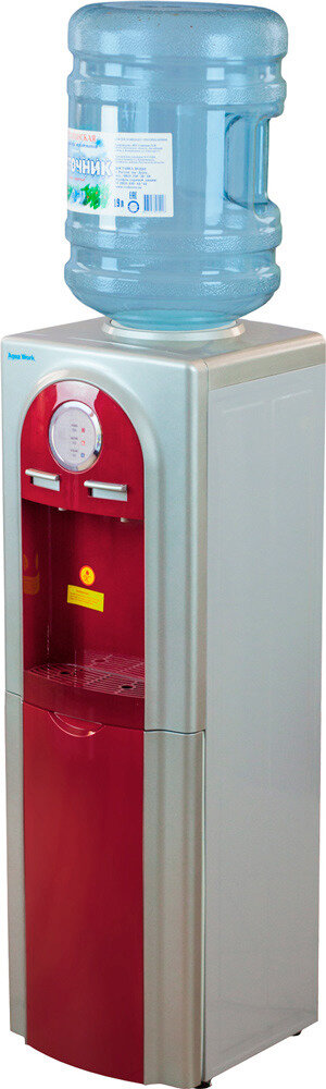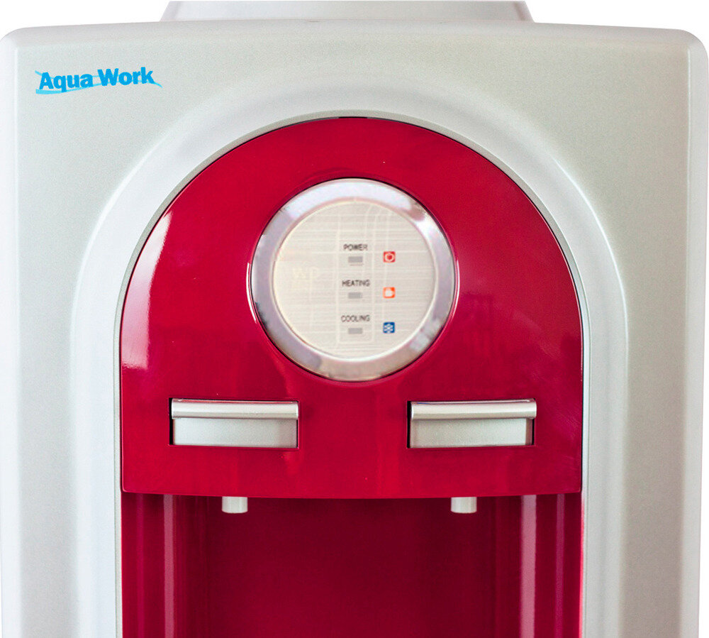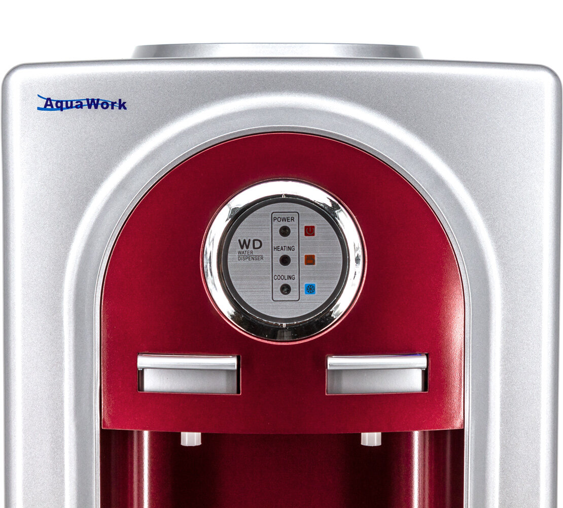 Кулер для воды Aqua Work YLR1-5-VB / Красный-серебристый / Напольный / Нагрев / Электронное охл / Нажатием на кнопки / Шкафчик