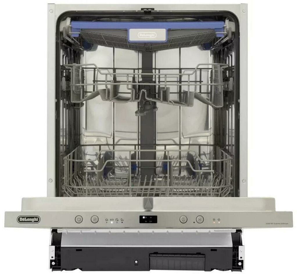 Встраиваемая посудомоечная машина DeLonghi DDW 06F Granate platinum, 60 см, 14 комплектов, Aqua Stop, 3 корзины, внутренняя LED-подсветка