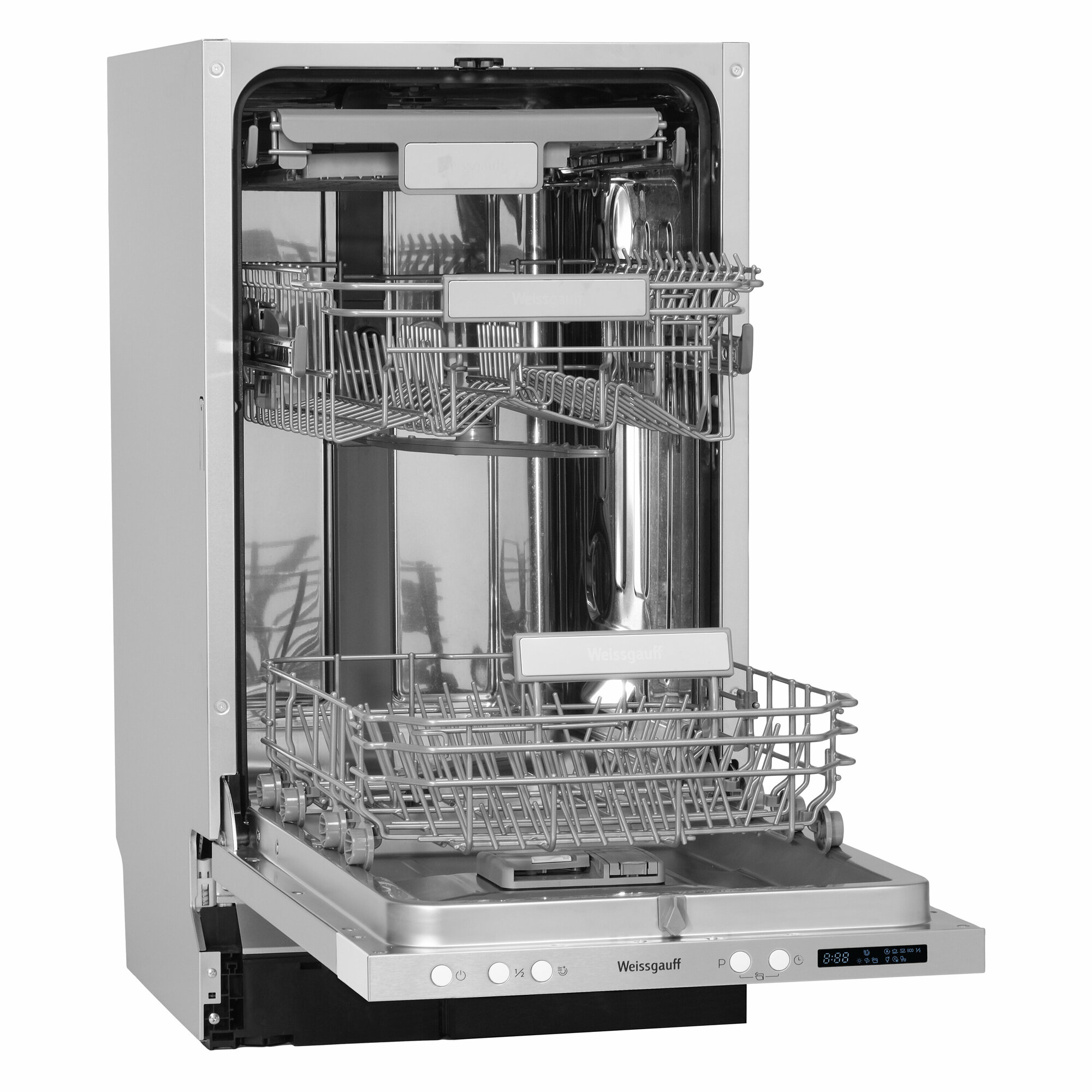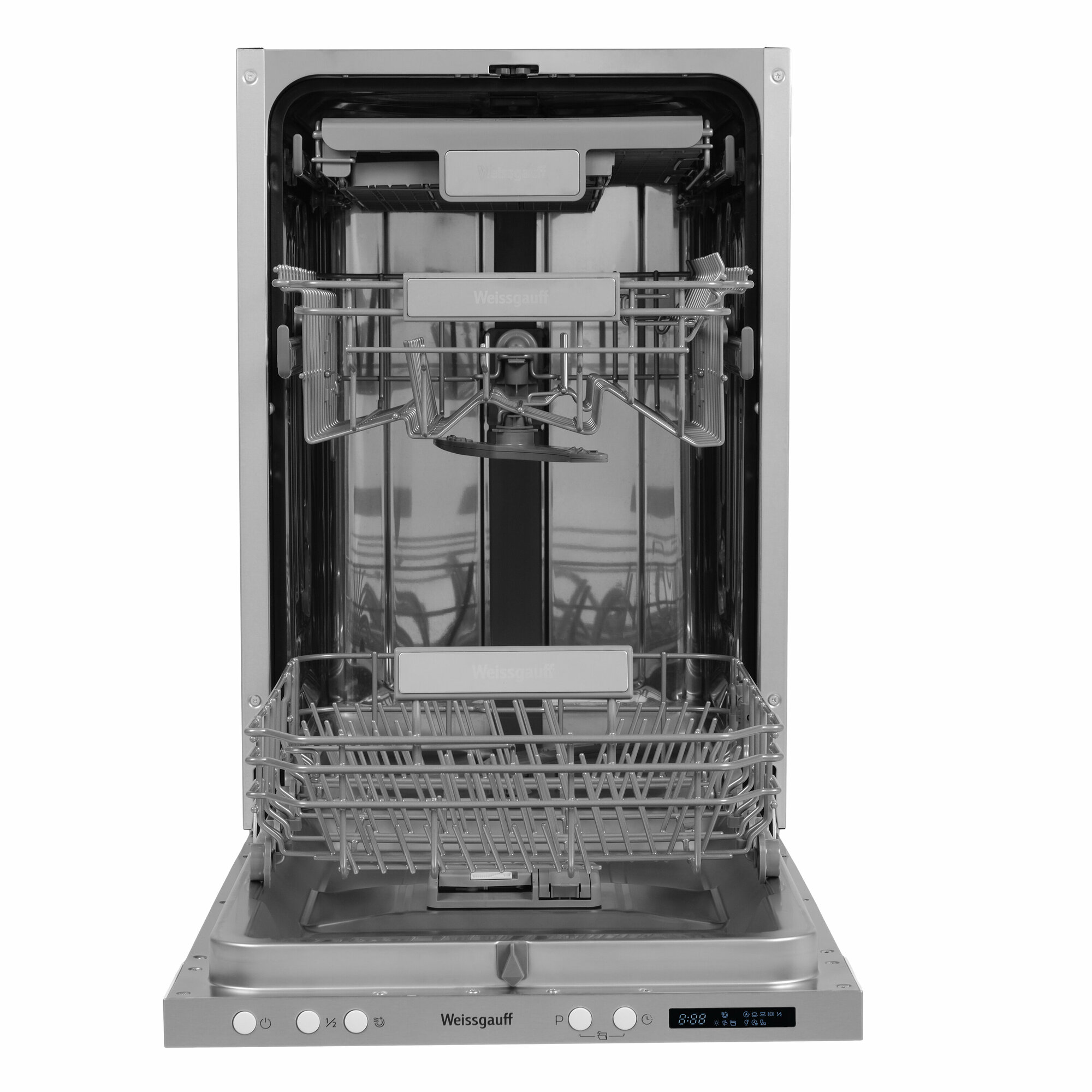 Встраиваемая посудомоечная машина с лучом на полу и авто-открыванием Weissgauff BDW 4533 D (модификация 2024 года),3 года гарантии,3 корзины, 14 комплектов, 7 программ, Половинная загрузка, Быстрая мойка 30 мин, Авто программа, Полная защита от протечек