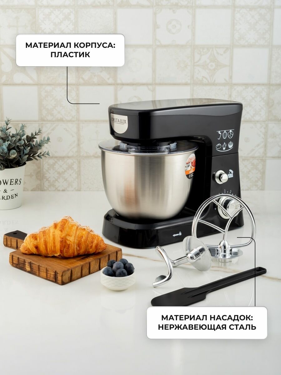 Миксер / 1000 Вт / планетарный многофункциональный / DELTA LUX DE-7900P / чёрный / с чашей 3,5 л