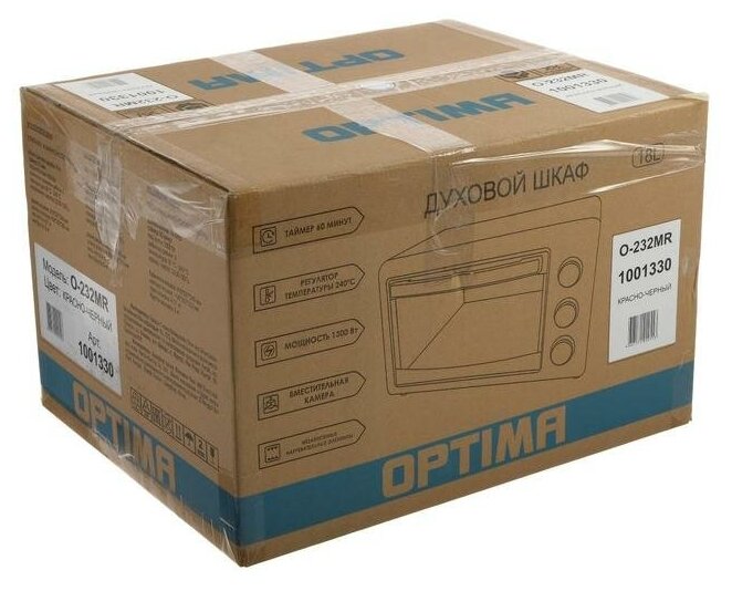 Жарочный шкаф OPTIMA O-232MR, 18л, таймер, противень, решетка, 1300Вт, красно-черный интересное: