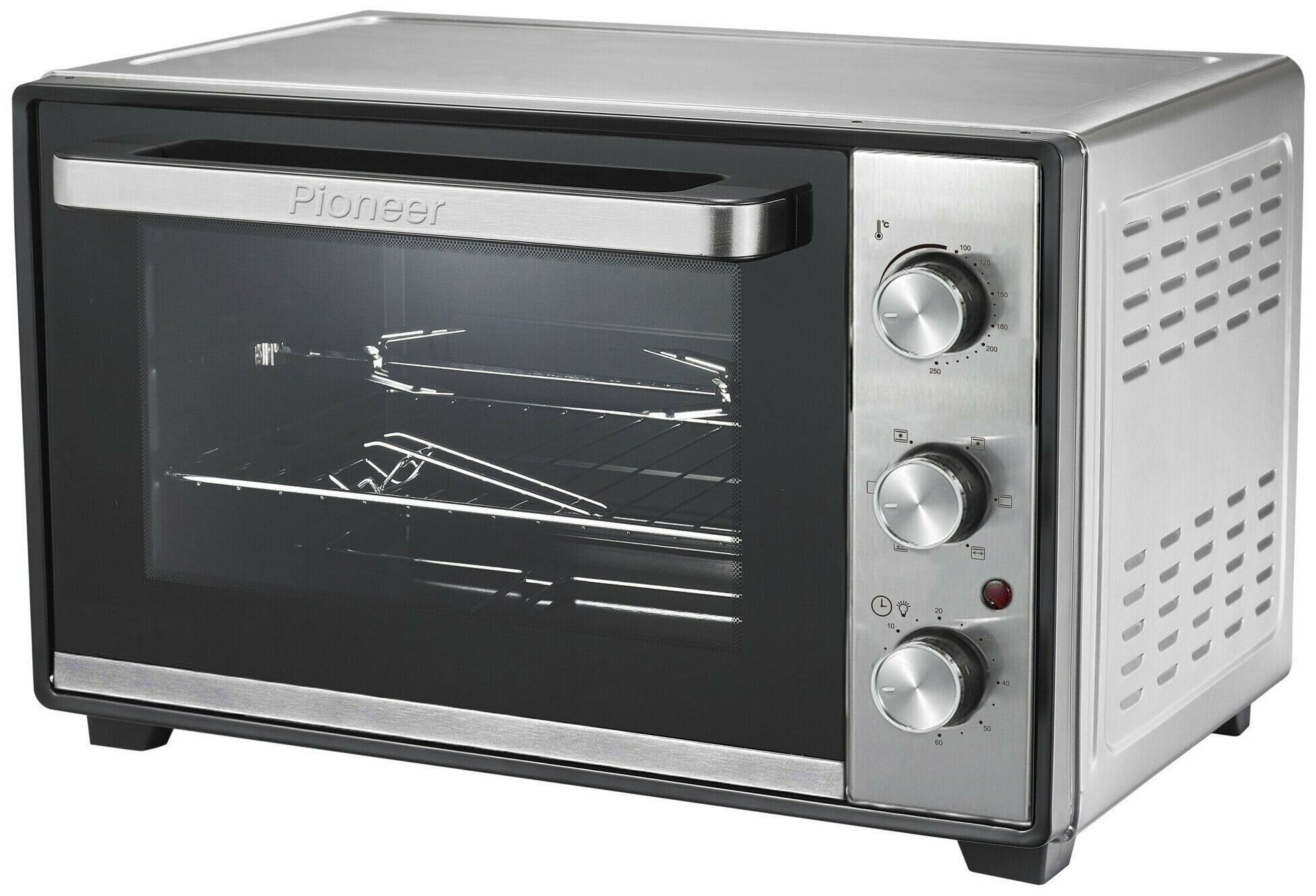 Электропечь Pioneer MO5020G, 38 л. с функцией конвекции, механическим управлением, электромеханическим вертелом, подсветкой, таймер 60 минут, 2 противня, 1600 Вт