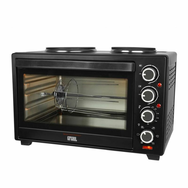GFGRIL Многофункциональная электрическая мини-печь GFO-40 HOT PLATES, с 2 конфорками, вертел, шашлычница, коврик для выпечки, духовка с конвекцией