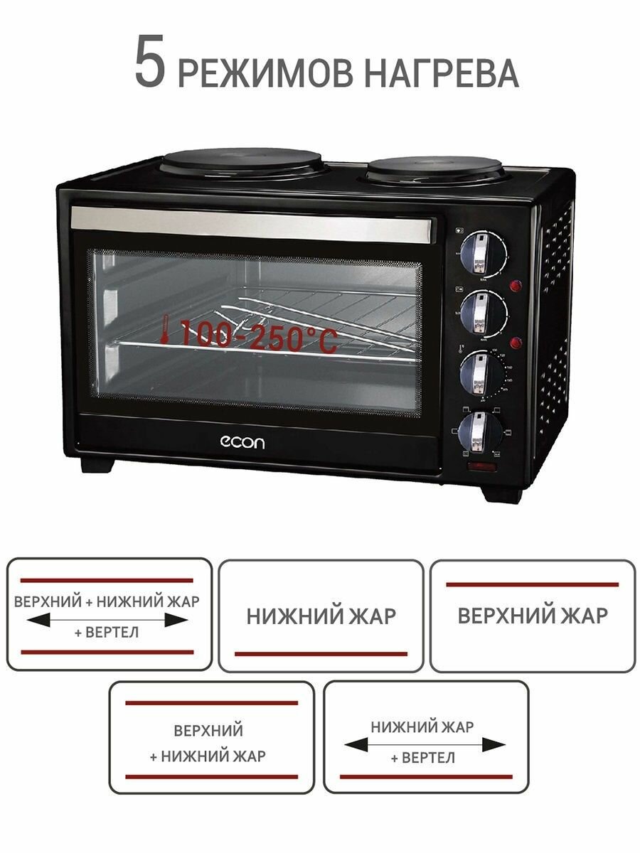 Ниже Вы можете прочитать отзывы на мини-печь ECON ECO-GP3222MO, ознакомится с подробными характеристиками, посмотреть интересные обзоры и фотографии на мини-печь ECON ECO-GP3222MO.