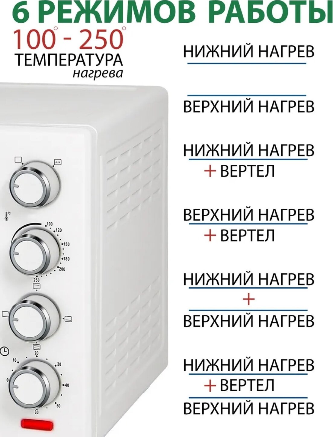 Эл.Духовка ECON ECO-G3801MO 38л, 1800Вт, 7 режимов