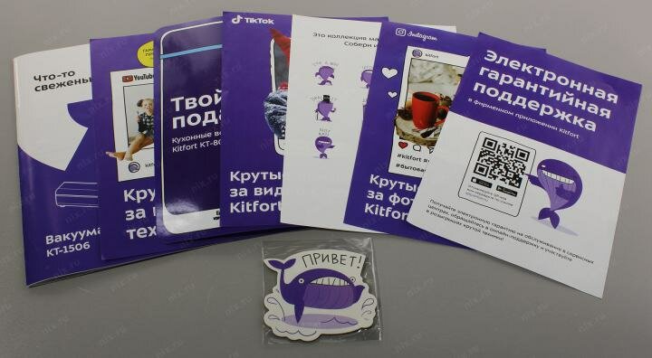 Это очень нужная вещь как в дома так и в поездках. А также в коробке были листовки с разными розыграшими техники Kitfort с простыми условиями. А самое милое , магнитик с изображением кита) |