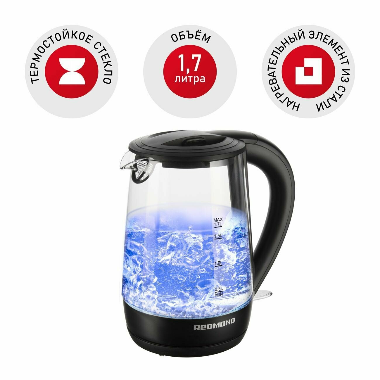 Чайник электрический Redmond RK-G193, 2200Вт, черный