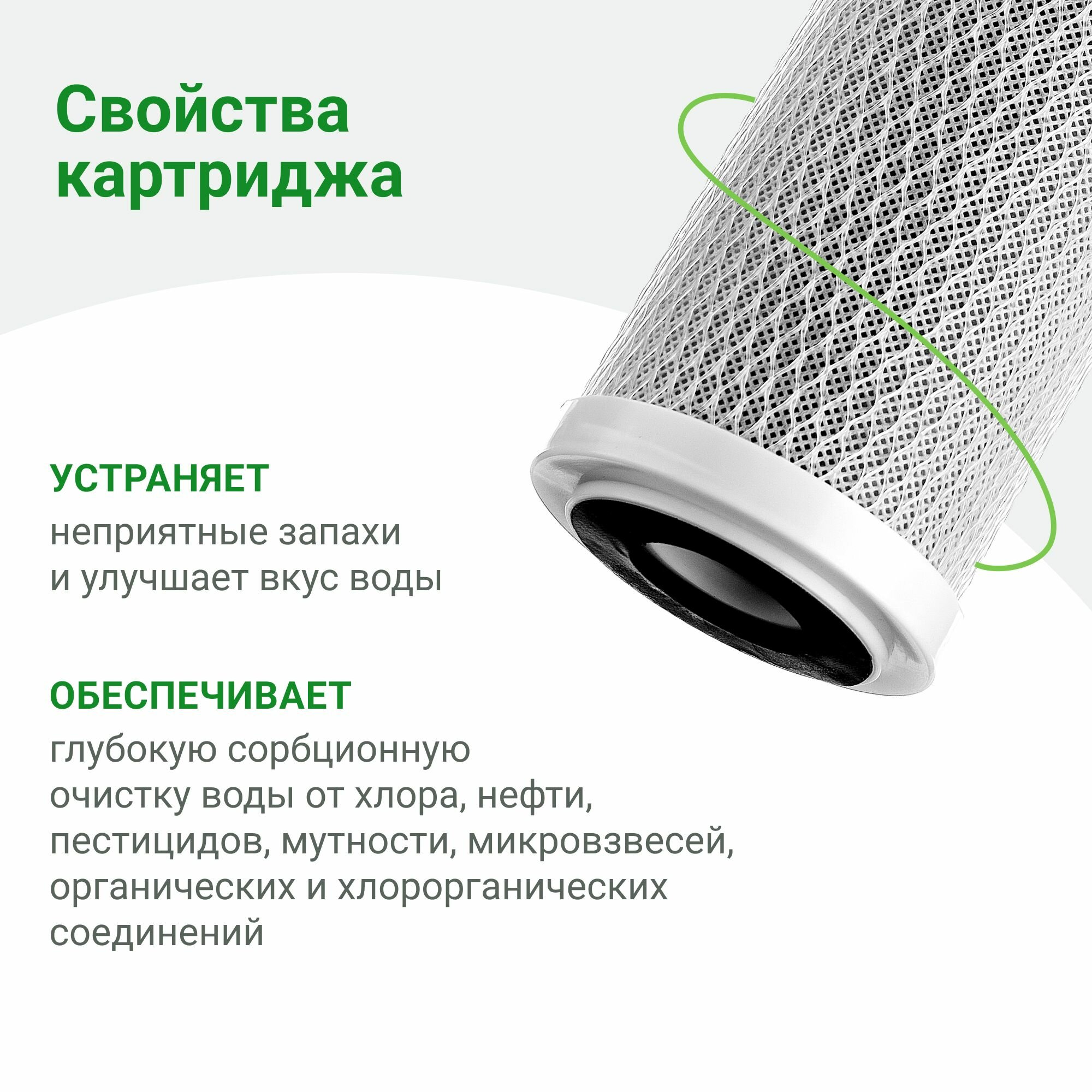 Угольный картридж Гейзер CBC 1 - 10 SL, для кондиционирования воды и удаления мелких нерастворимых примесей, 27005