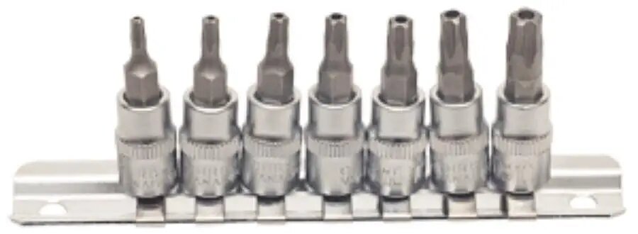 Набор головок торцевых TORX 7 предметов TS10,15,20,25,27,30,40 (DR1/4 ,5 лучей) АвтоDело на планке