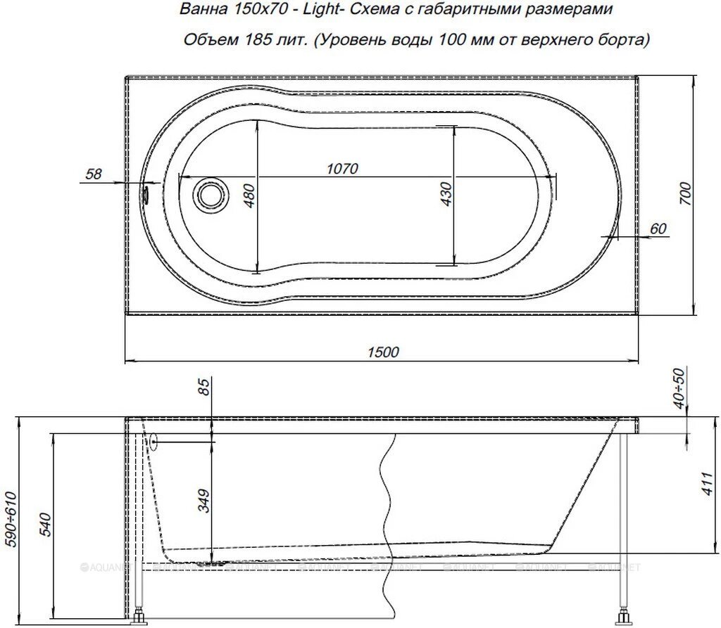 Акриловая ванна Aquanet Light 150x70 242507 без гидромассажа интересное: