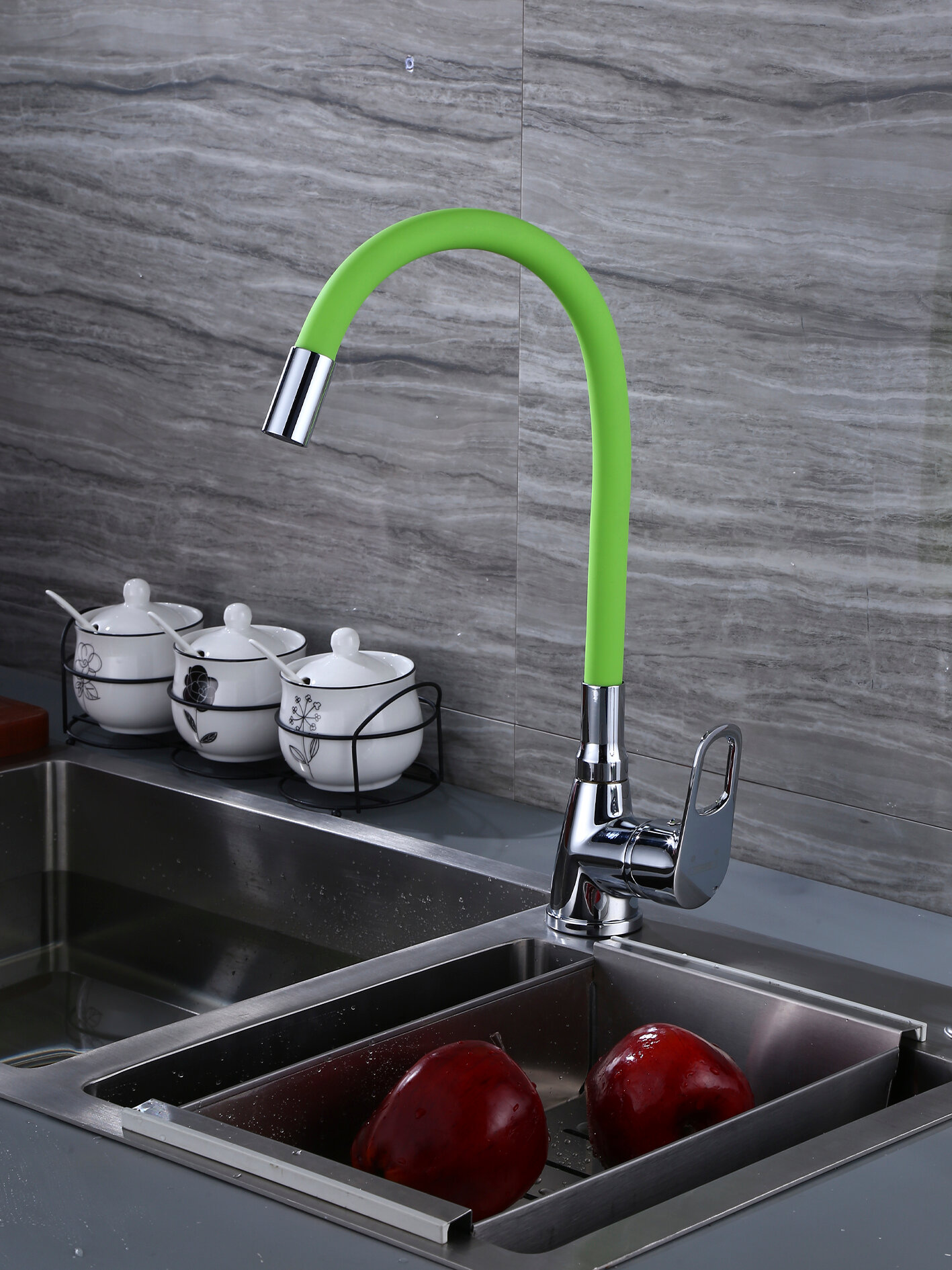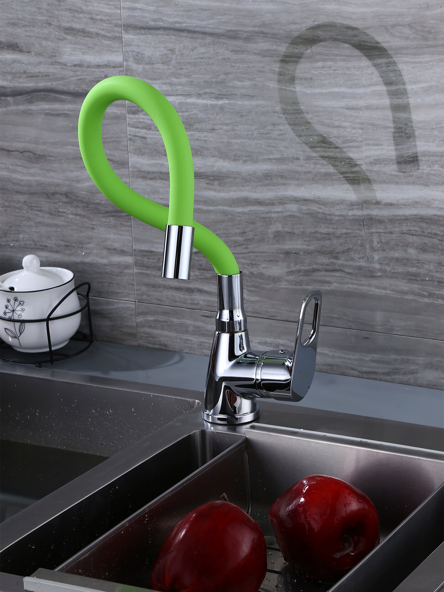 HANSEN Смеситель для кухни с гибким изливом хром/зелёный HANSEN H59004T