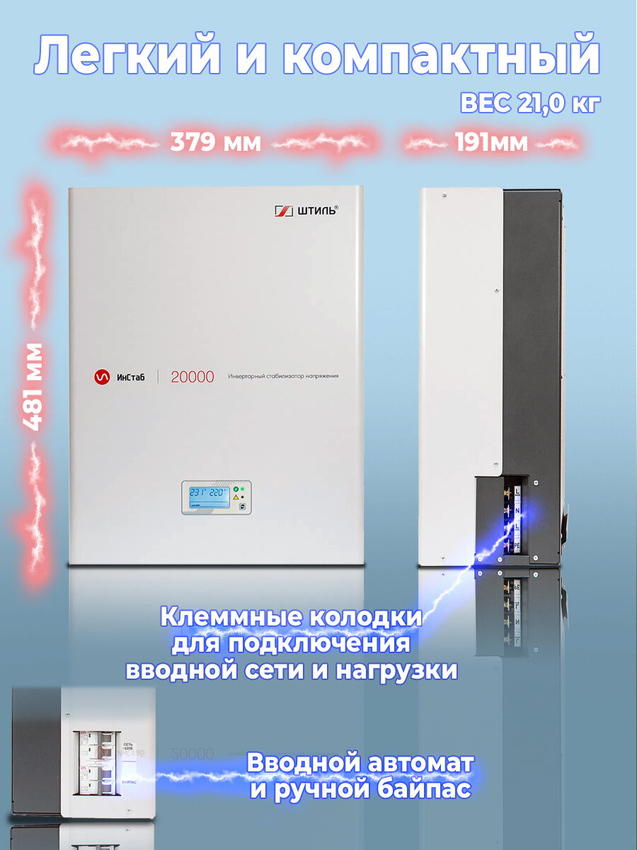 Инверторный стабилизатор напряжения Штиль ИнСтаб IS20000 (220-230В), 20 КВА, однофазный, для дома 15000 18000 Вт 15 18 КВт