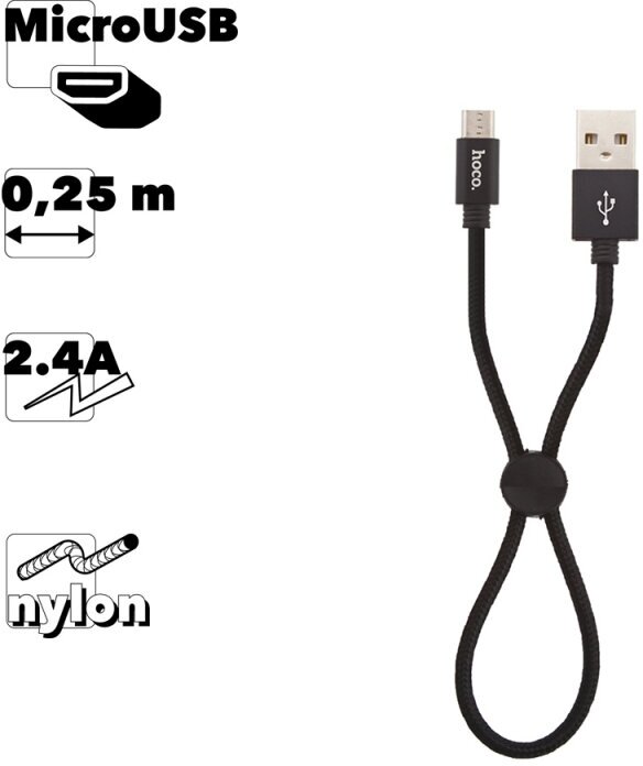 USB кабель HOCO X35 Premium MicroUSB, 2.4А, 0.25м, нейлон (черный)