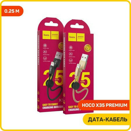 Дата-кабель Hoco X35 Premium USB-Lightning (2.4 A) 0.25 м, золото