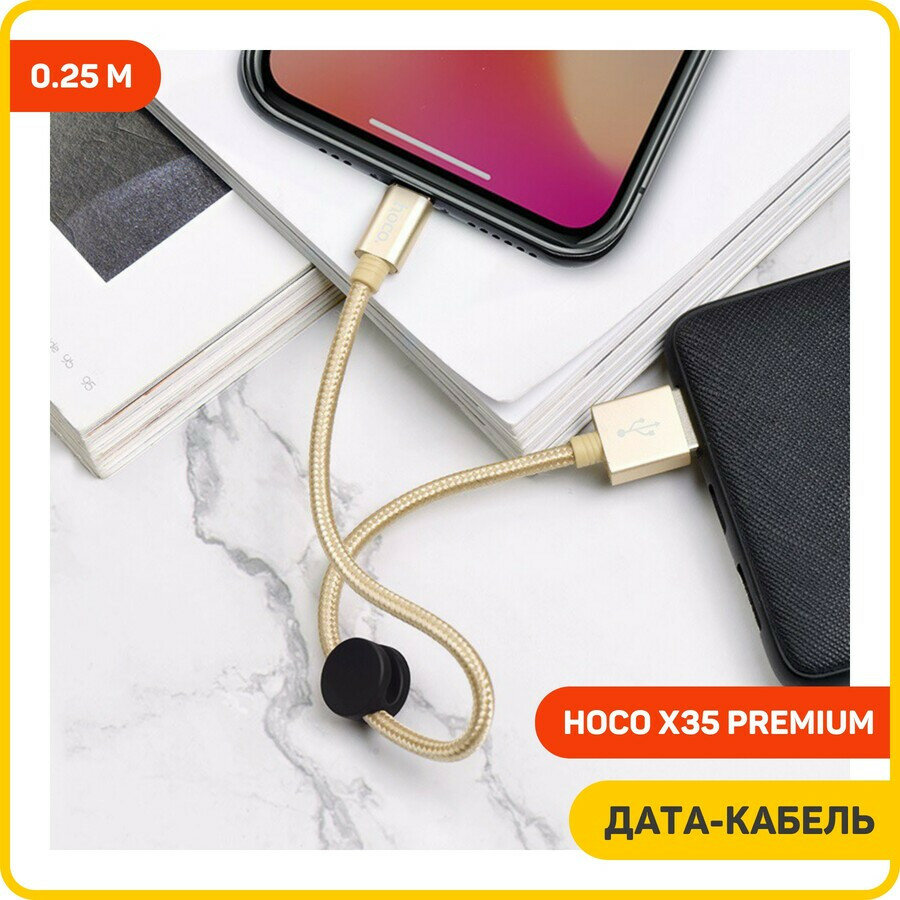 Кабель USB - 8 pin HOCO X35 Premium, 0.25м, 2.4A, цвет: золотой