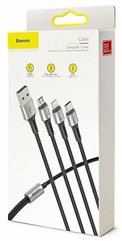 Кабель Baseus Caring Touch Selection USB - microUSB/Lightning/USB Type-C (CAMLT), 1.2 м, черный интересное: